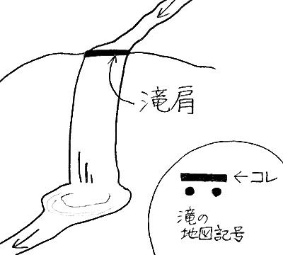 滝の、水が急降下する境の部分。滝面の上流端。滝の最上部の遷急点ともなる。滝の高さを求める基準となる。