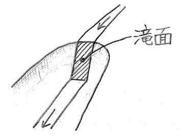 滝の、落下する水の裏の岩盤部分を指す。すなわち、急勾配になる部分の河床。その幅は洪水時の川幅(落水の幅)で定義され、それより外側は滝崖とよばれる。